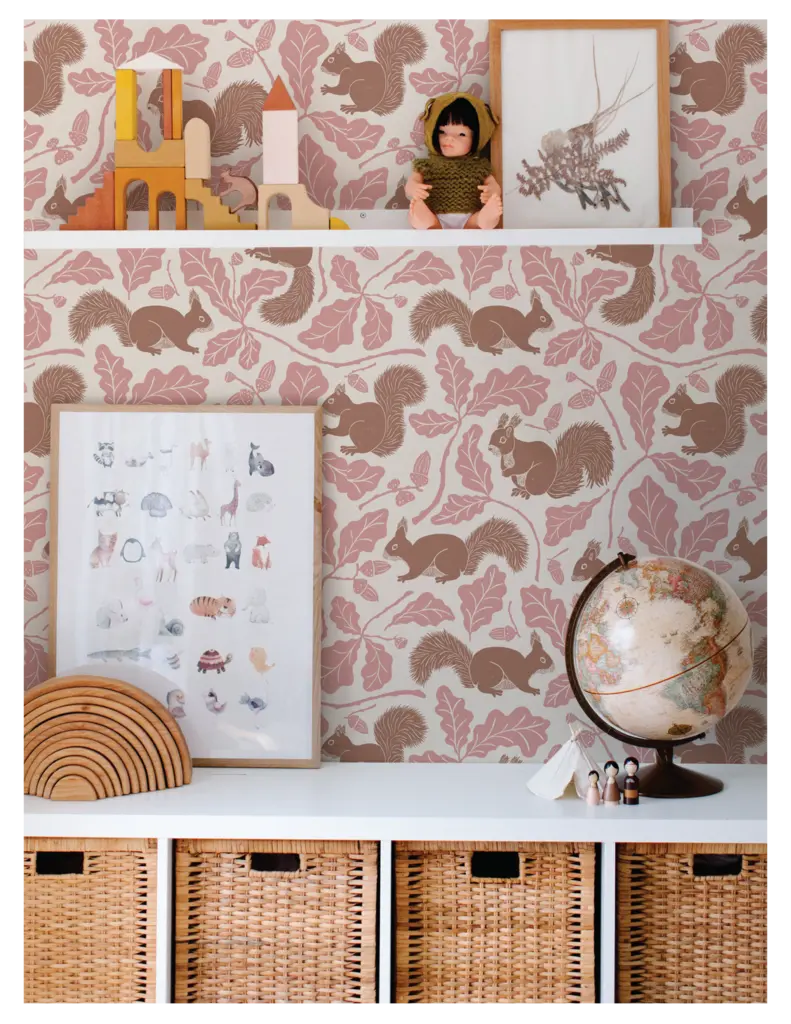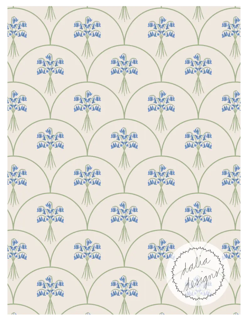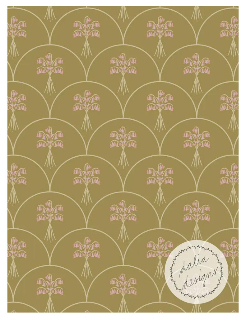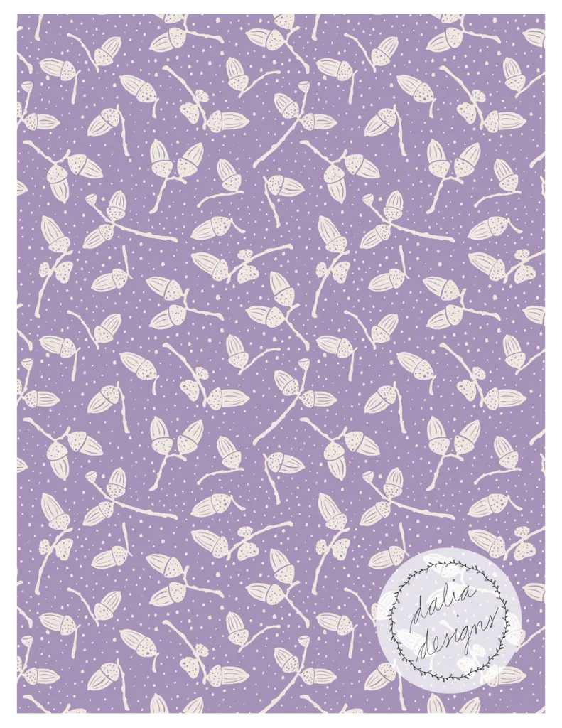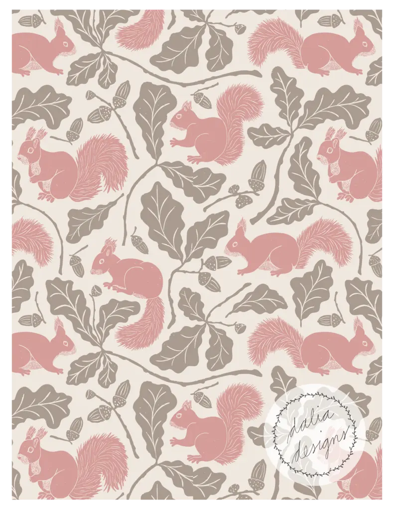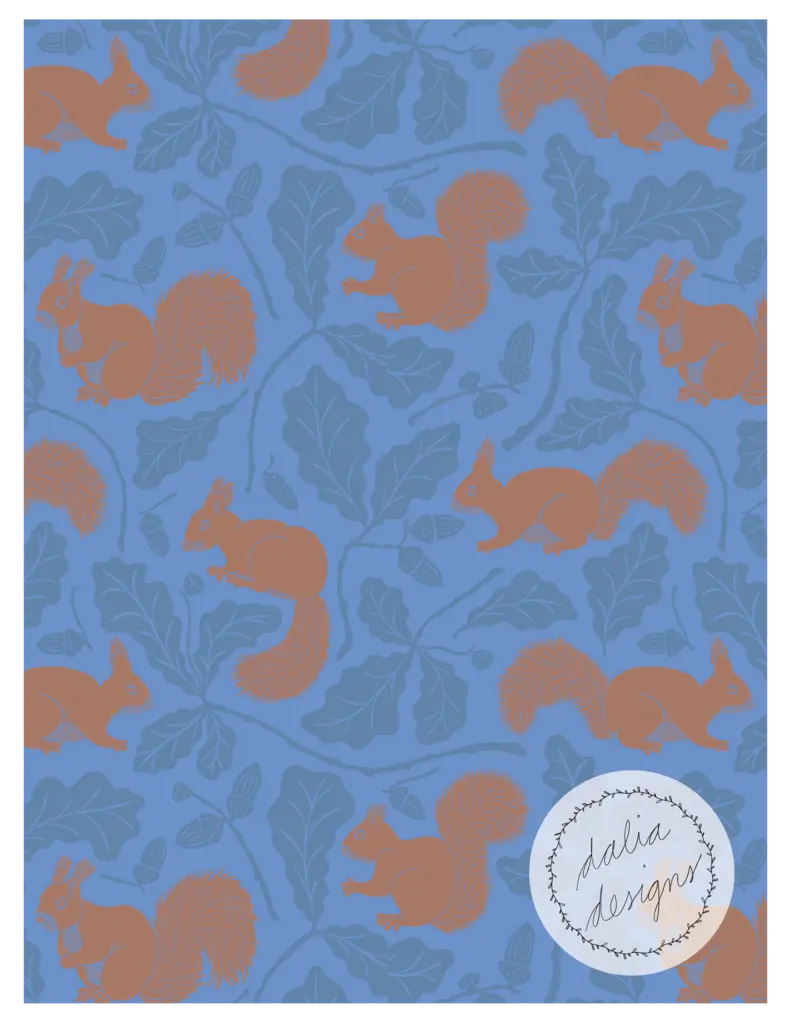 The Whimsical Woodland Mini Collection includes four playful patterns featuring badgers, squirrels, bluebells, acorns, and oak leaves. Designed with kids in mind, it has a fun and whimsical feel. The color palette is built around Pantone’s Color of the Year 2025, “Mocha Mousse,” blending soft and rich hues reminiscent of a late summer flower bouquet.